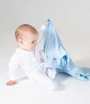 90% cotton/10% viscose. Single jersey. Double layer blanket with bound edge. Tag free.